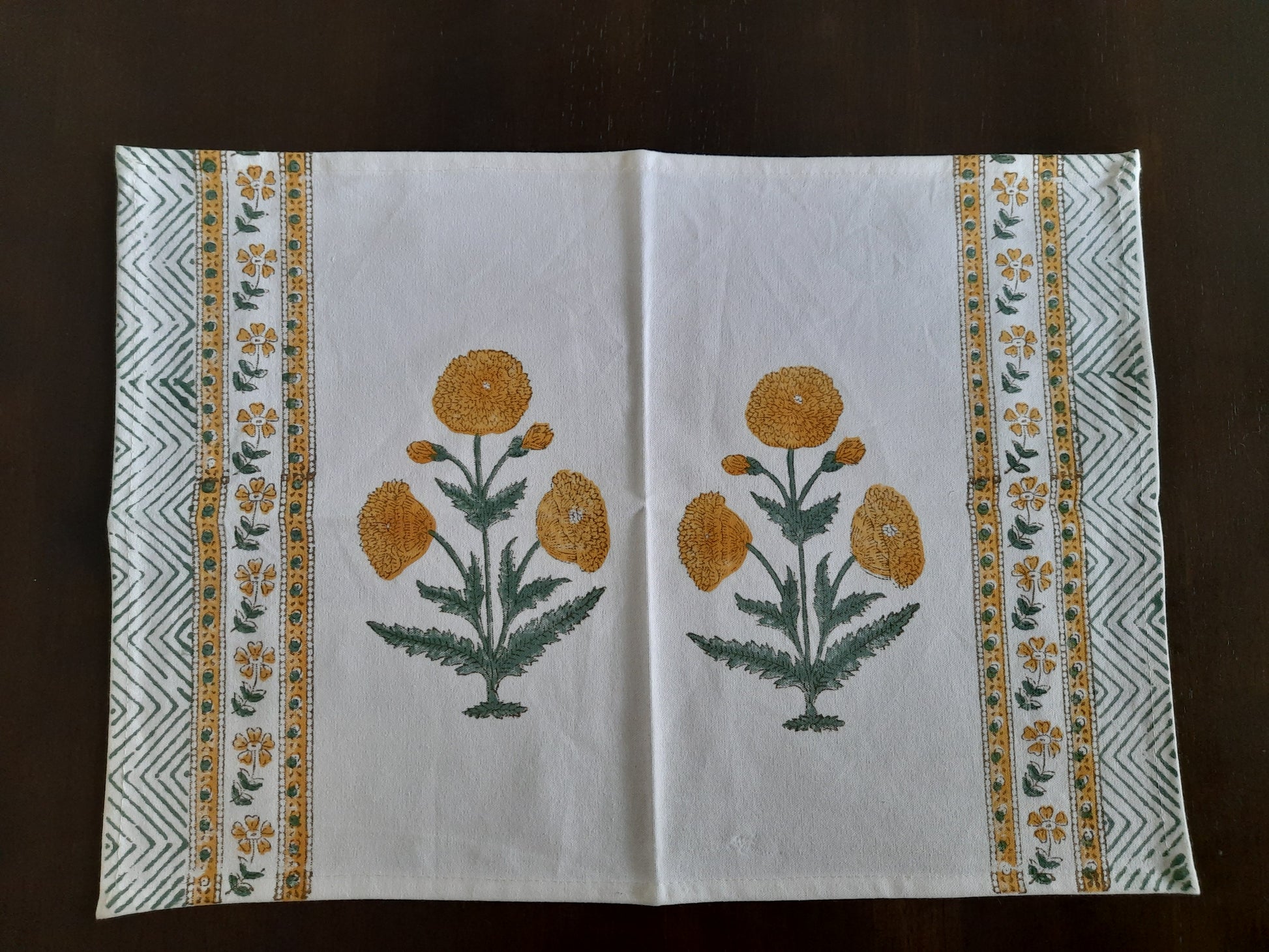 WHITE & YELLOW BLOCK PRINTED TABLE PLACEMATS